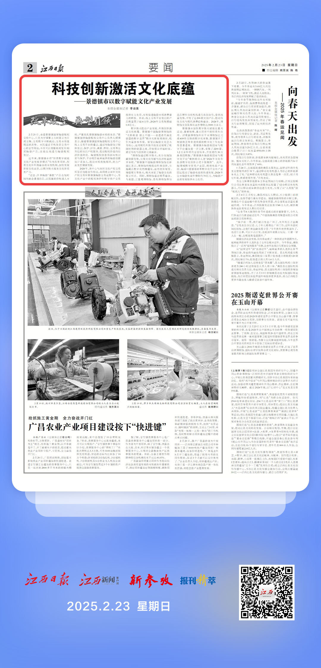 近年来,景德镇市将“探索数字赋能文化产业发展新模式”作为改革项目,探索文化和科技融合的有效机制,加快发展新型文化业态,以数字技术催生文化新质生产力。