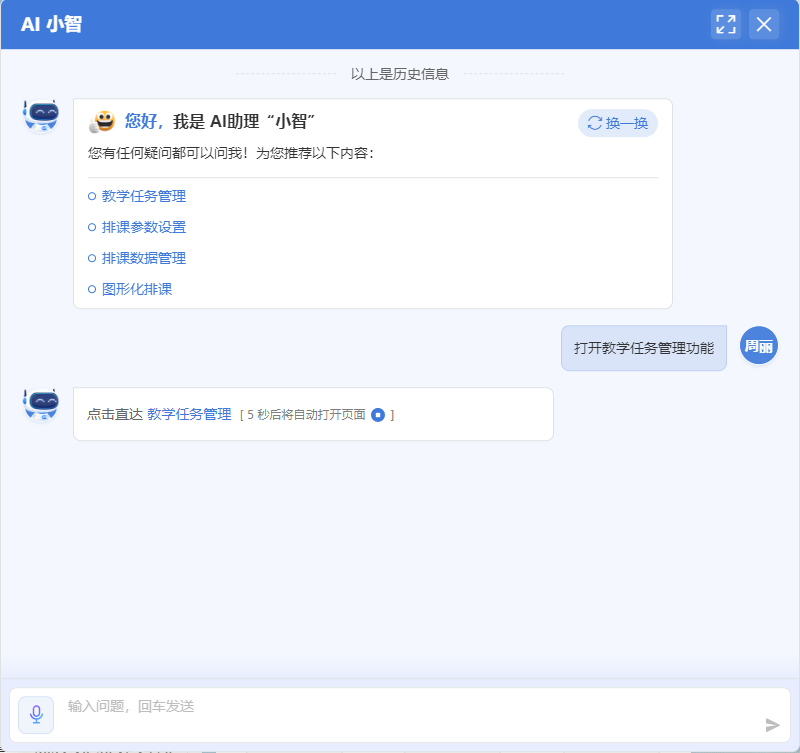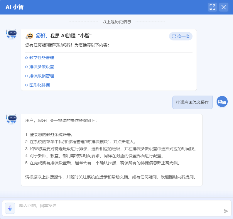 借助「AI小智」的工作流搭建,师生无需深入复杂的菜单层级寻找业务功能,通过对话快速定位事项、调用流程、办理业务。