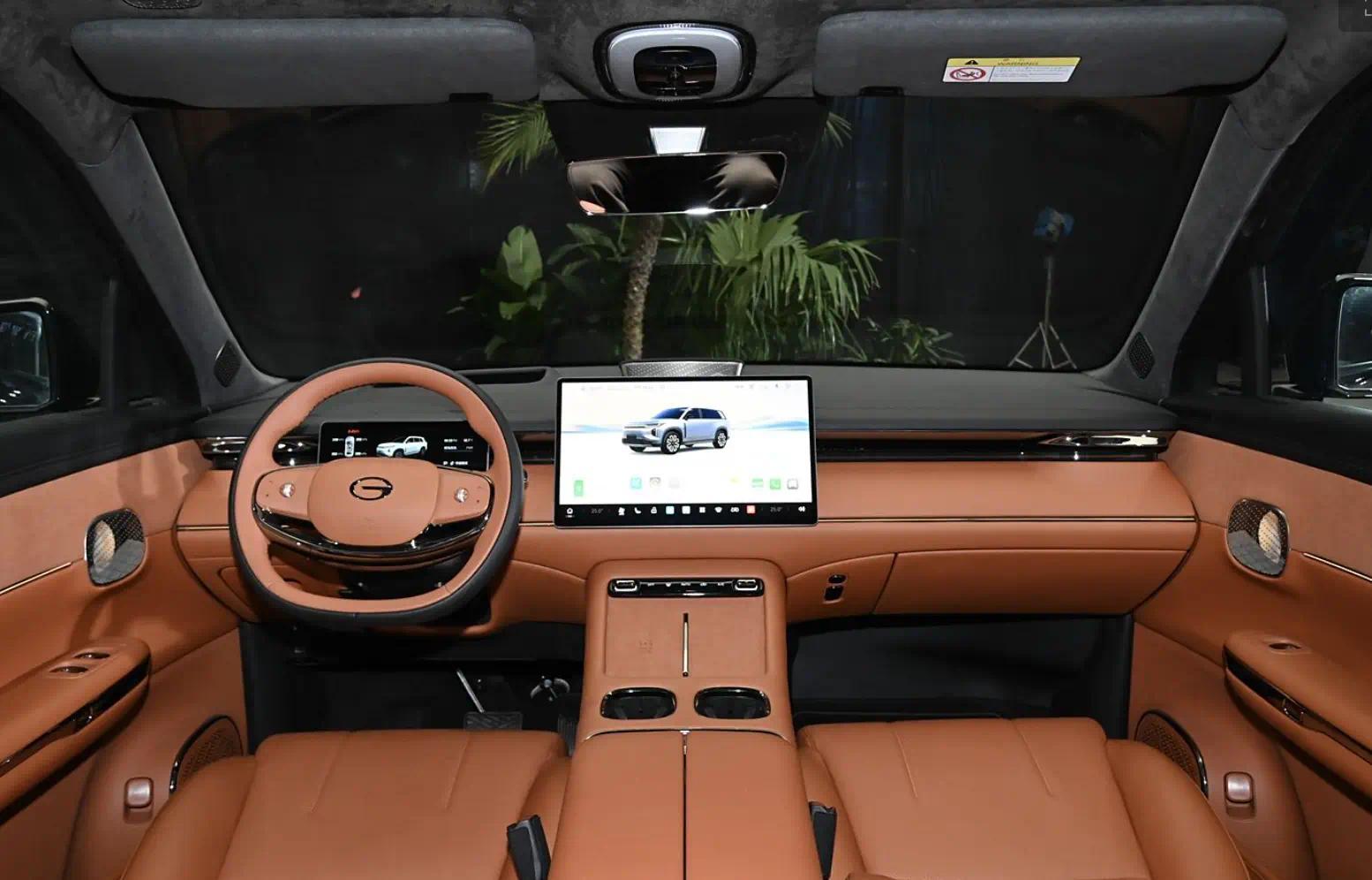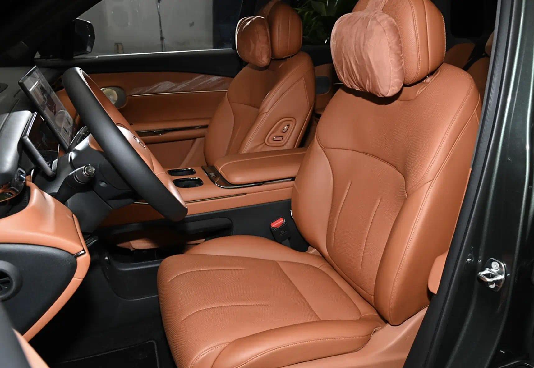 车内采用环抱式座舱设计,中控台层次感分明,大量软性材质与皮质座椅的运用,营造出豪华舒适的驾乘氛围。12.3英寸全液晶仪表盘和14.6英寸中控大屏,显示清晰,操作流畅,搭载最新的智驾互联系统,集成了导航、多媒体、车辆信息等多种功能,还支持智能语音交互,动动嘴就能轻松控制车辆各项功能。