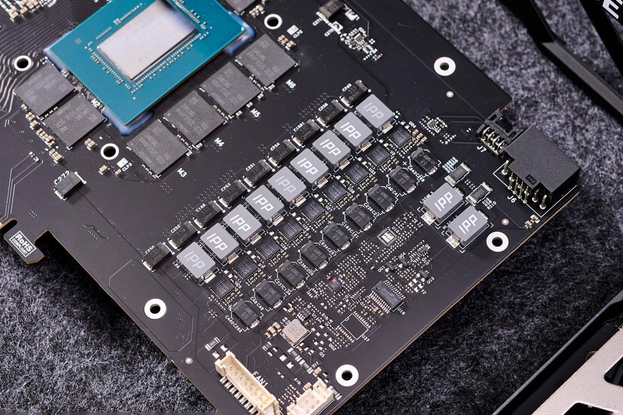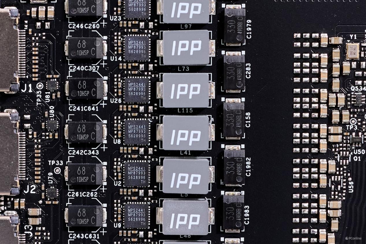 供电部分配备高品质的固态电容和IPP贴片式电感,这些元件的选择和布局都经过精心设计,以确保显卡的稳定性和耐用性。
