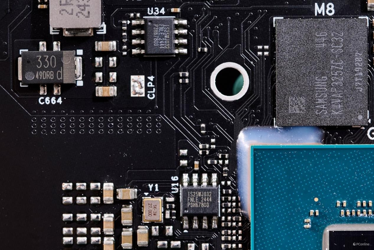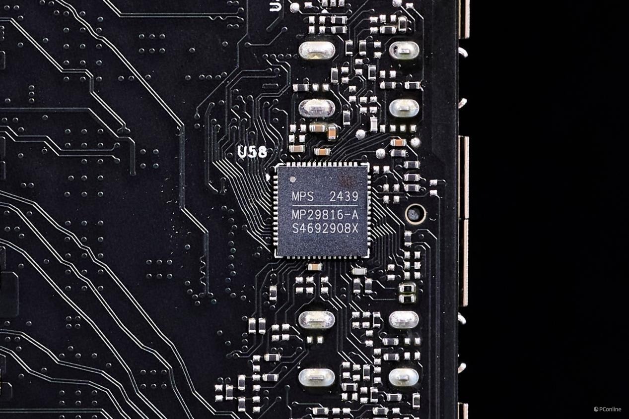 并且每个供电均采用了DrMos管,型号为MP87933,最大持续电流高达90A的高品质DrMos管。