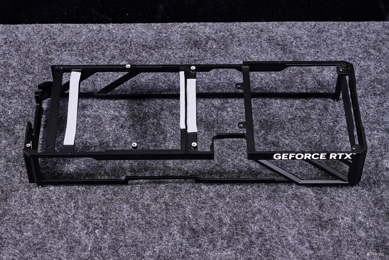 显然,鉴于散热器主体的庞大体积,加强设计是不可或缺的。iGame GeForce RTX 5080 Vulcan OC 16GB火神显卡配备了独立的金属中框,这不仅显著增强了显卡的整体结构稳定性,还能够辅助供电部分的散热。