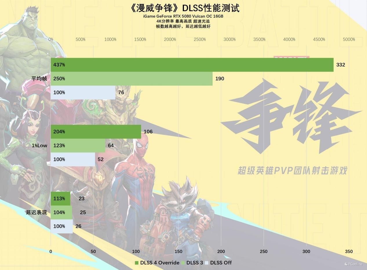 如果你想玩的游戏还不支持DLSS 4,那也不用担心,NVIDIA App还提供DLSS 4 Override功能,说人话就是能够让游戏强开DLSS 4,这里我们以《漫威争锋》为例,在NVIDIA App中简单设置,就能将帧生成调至“4X”,一键实现多帧生成。