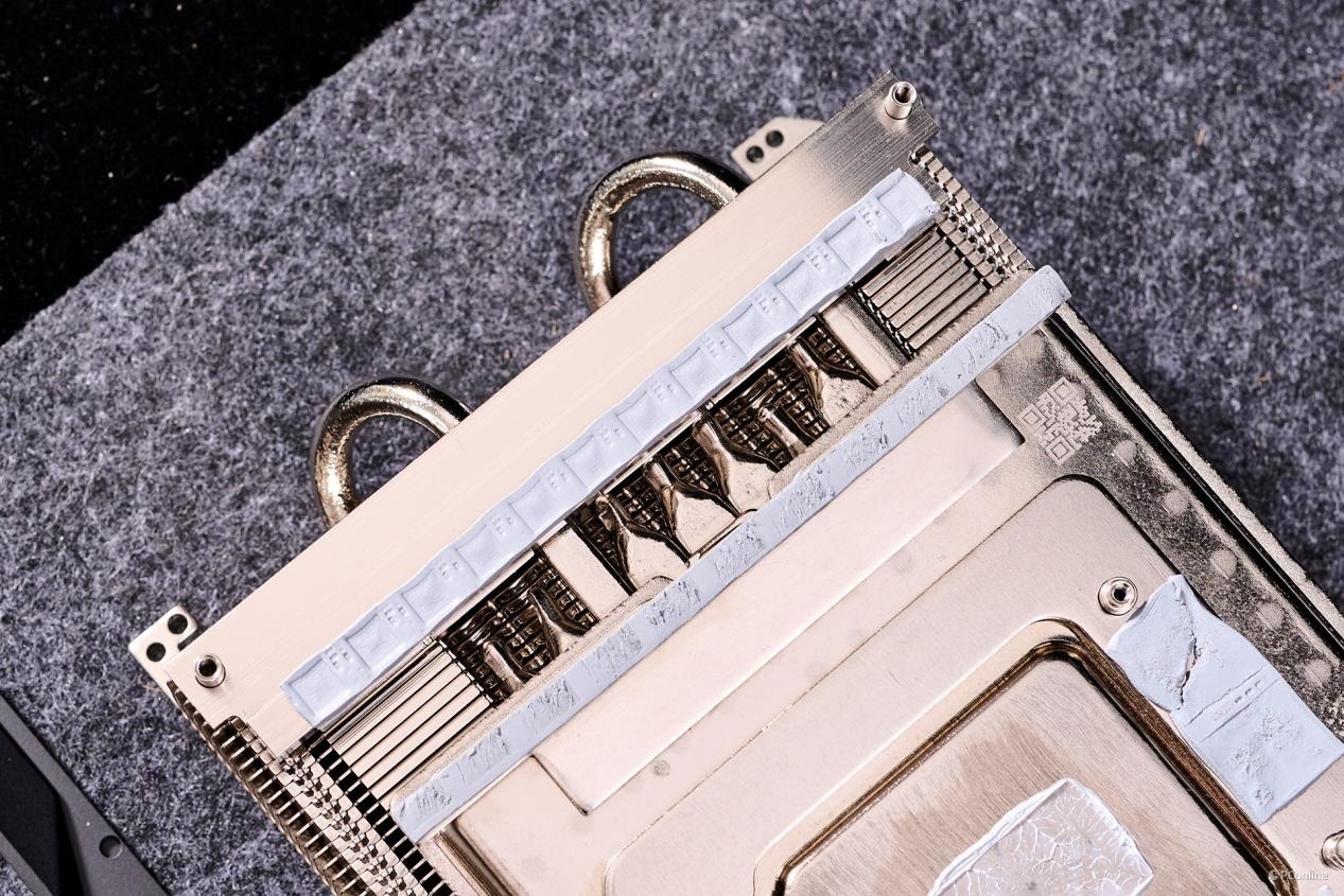 散热器的主体两侧分别设有辅助散热片,用于供电DrMos与电感位置,它们配备了高品质的导热垫以提供辅助散热,并通过焊接与散热主体相连,从而实现更高效的散热效果。