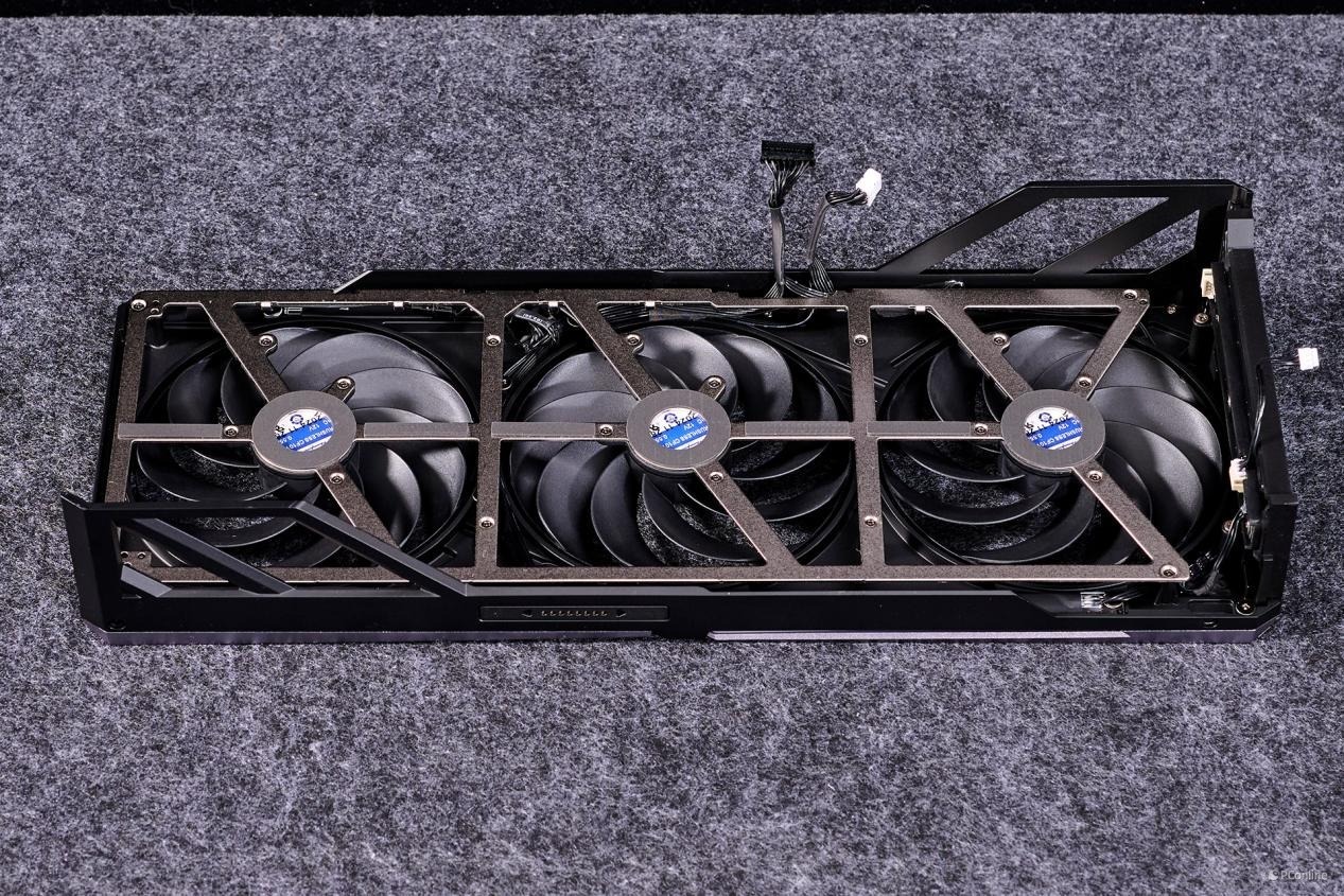 三个 107mm 直径的风扇同样利用金属顶罩进行固定