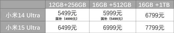 综合上述信息来看,其实小米15 Ultra的这波升级是已经超过了1500元的,所以从性价比的角度来看小米15 Ultra无疑是最佳选择。但是现在叠加了国补,500元的优惠幅度并不小,这就给了小米14 Ultra足够的市场空间,依旧有很大一部分用户会去选择,毕竟4打头的价格还是颇具吸引力的。当然,如果说大家并不是很着急入手,不妨等一等618,小米15 Ultra相较于其他家的超大杯产品有先发优势,届时很可能会有降价促销,限时直降500元来到5999元再叠加国补到5499元也不是不可能。而小米14 Ultra也会进一步降价,很有可能起售价来到4499元起。不得不说,今年的年中要上演一波超大杯乱杀的景象了,对于消费者来说是有利的,或许又是等等党的一个春天。