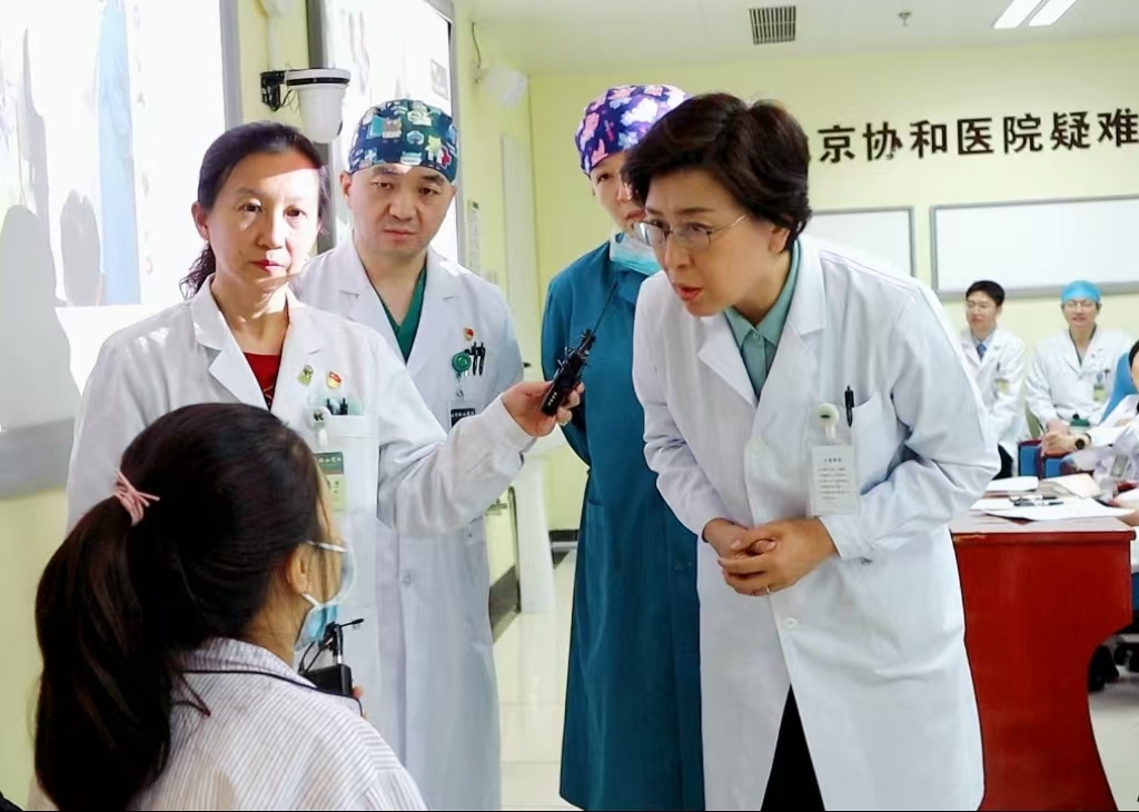 2月27日,北京协和医院院长张抒扬(右一)及相关专家为罕见病患者进行多学科会诊。新华社记者 徐鹏航 摄