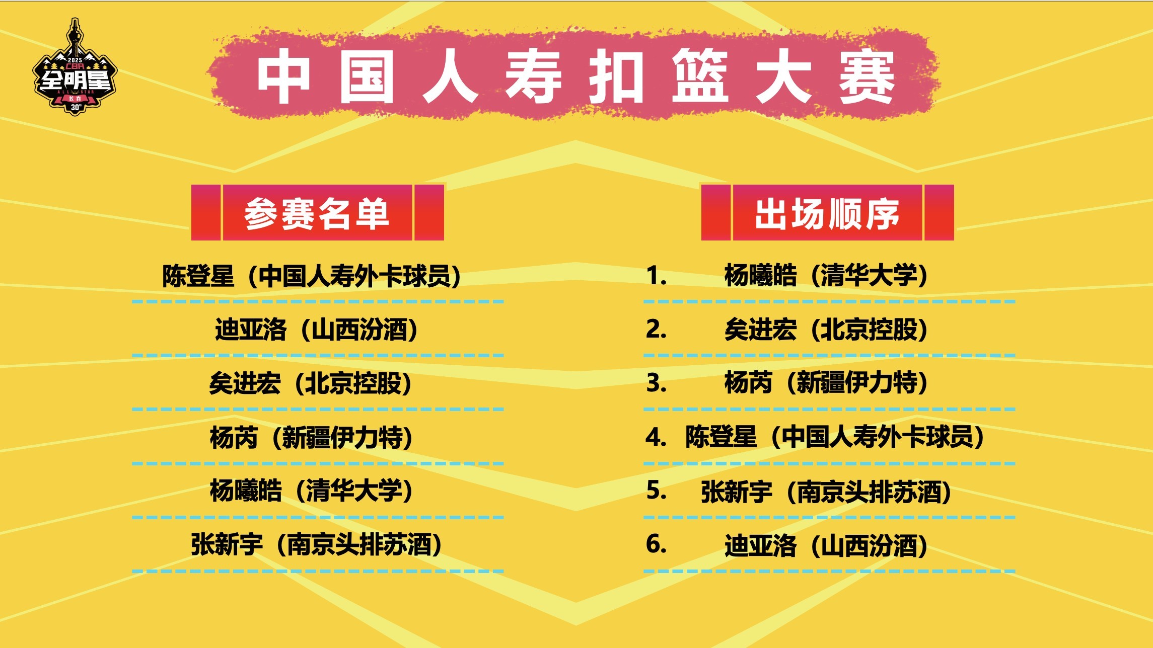 3月1日,2025年CBA全明星单项赛将在长春拉开帷幕,赛前,各单项赛出场顺序出炉。