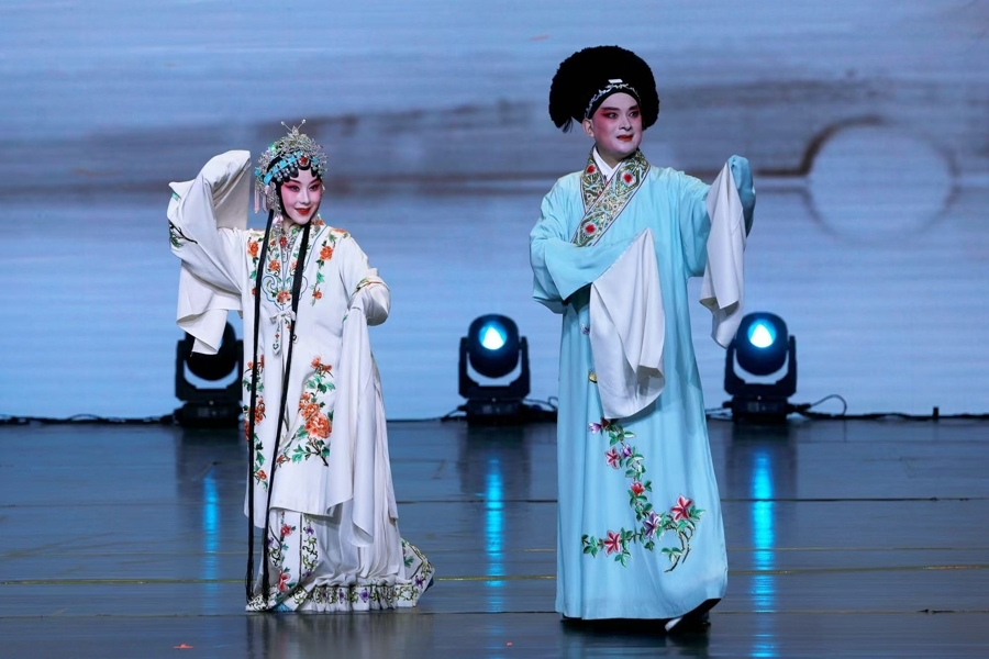 流行于苏沪皖的淮剧又名“江淮戏”,是一种古老的汉族戏曲剧种,被列入上海市和国家级的非遗名录。淮剧唱腔朴实,表演上素称能时能古、能文能武,具有鲜明的艺术特色。今年是乙巳蛇年,赵悦、邱海东共同演绎淮剧《白蛇传》中的《游湖》选段。