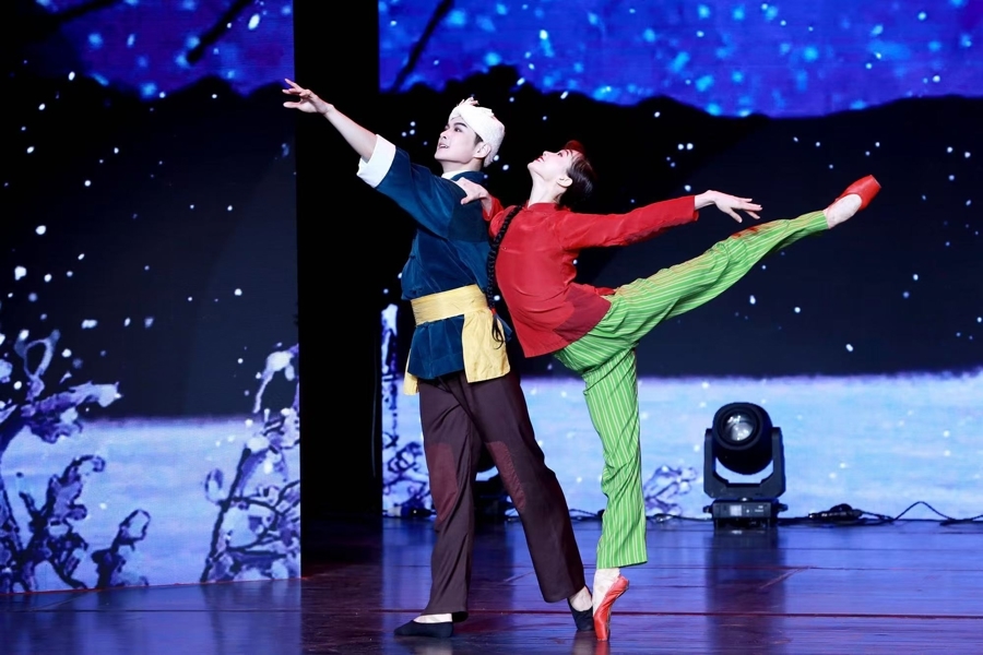 中华优秀传统文化的神、韵、美,不仅体现在戏曲中,也根植在众多原创艺术作品中。1965年首演大获成功的芭蕾舞剧《白毛女》,就是一部借鉴了京剧、民歌等艺术形式创作而成的民族化经典,展演舞台上,上芭的青年演员许靖昆、戚冰雪,为大家带来了芭蕾舞剧《白毛女》选段。