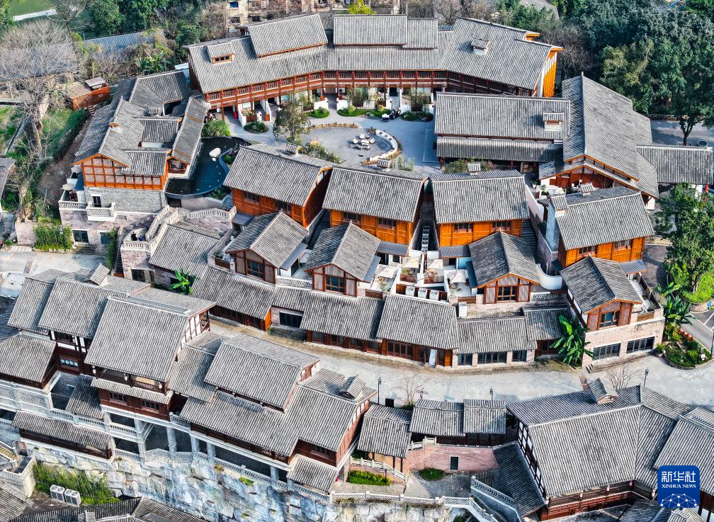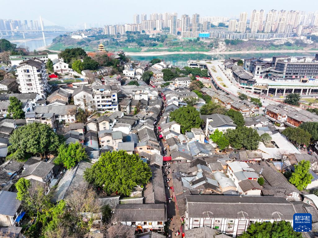 这是2月28日拍摄的重庆磁器口古镇景色(无人机照片)。