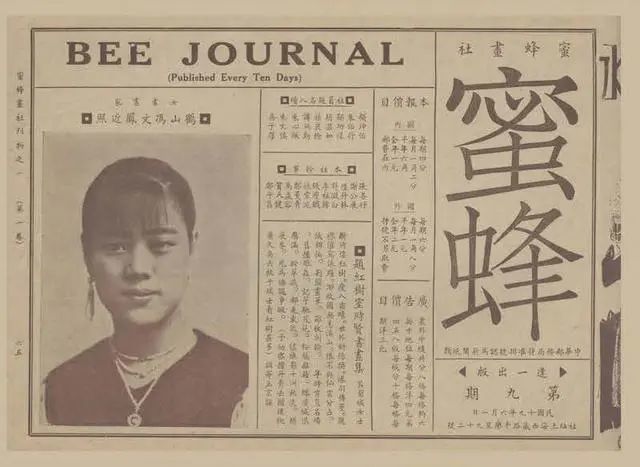 《蜜蜂》1930年同为广东籍的画家冯文凤,1918年在香港创办女子书画学校,1925年在上海设立分校,培养女子美术人才。1920年在香港太白楼发起香港第一次华人女子美术展览会。定居上海后,她参与沪上名家书画展览活动,屡获好评。1933年曾在黄宾虹、张大千评审下获得书法第一名。1925年至1933年期间冯文凤书画润例常见于报头。
