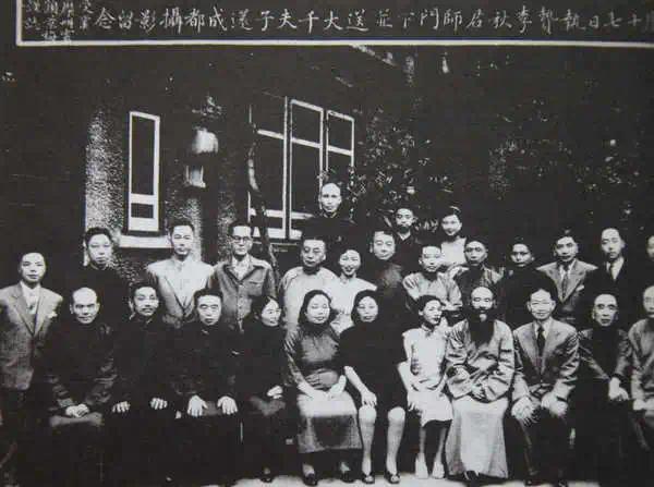 李秋君率中国女子书画会部分友人、大风堂门下,在上海送张大千夫妇回成都时的合影,时在1948年。第一排自左三起:李祖韩、顾青瑶、杨浣青、李秋君、徐雯波、张大千、梅兰芳、李祖夔、张乃燕,第二排左起:张彼得、曹逸如、糜耕云、伏文彦、李祖明、顾景梅、李祖桓、谢稚柳等。