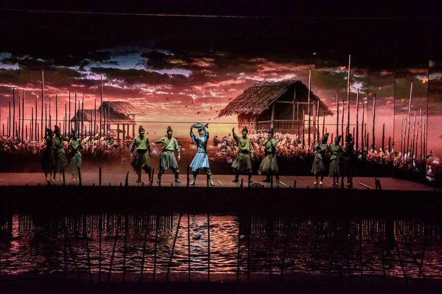 当舞台穹顶化作浩瀚星图,黄浦江的波涛从舞台奔涌而出,一束光带你坠入水墨画卷。光影流转,数千年的文明史被浓缩成60分钟的穿越盛宴,这里是史诗大秀《上海千古情》。