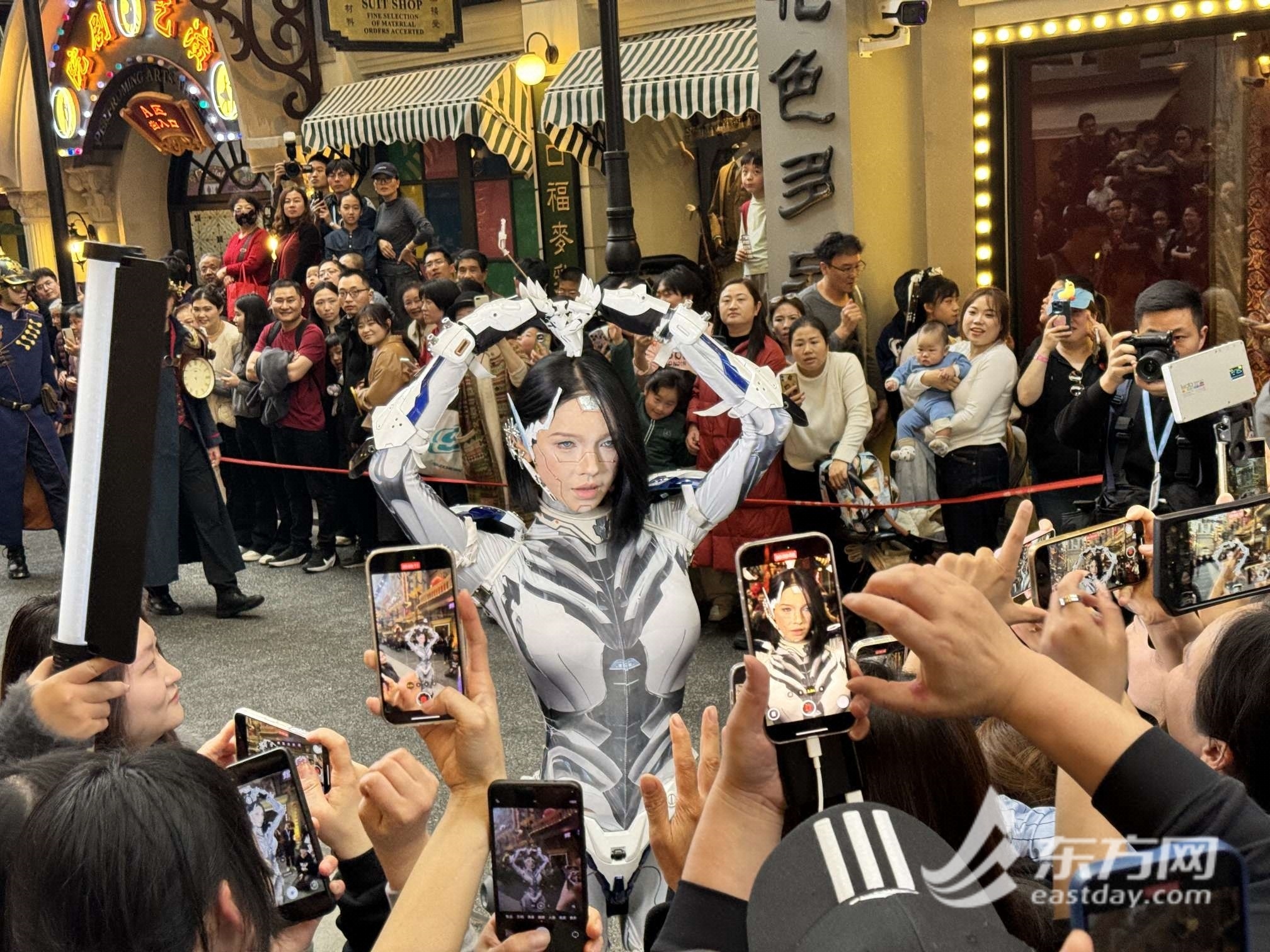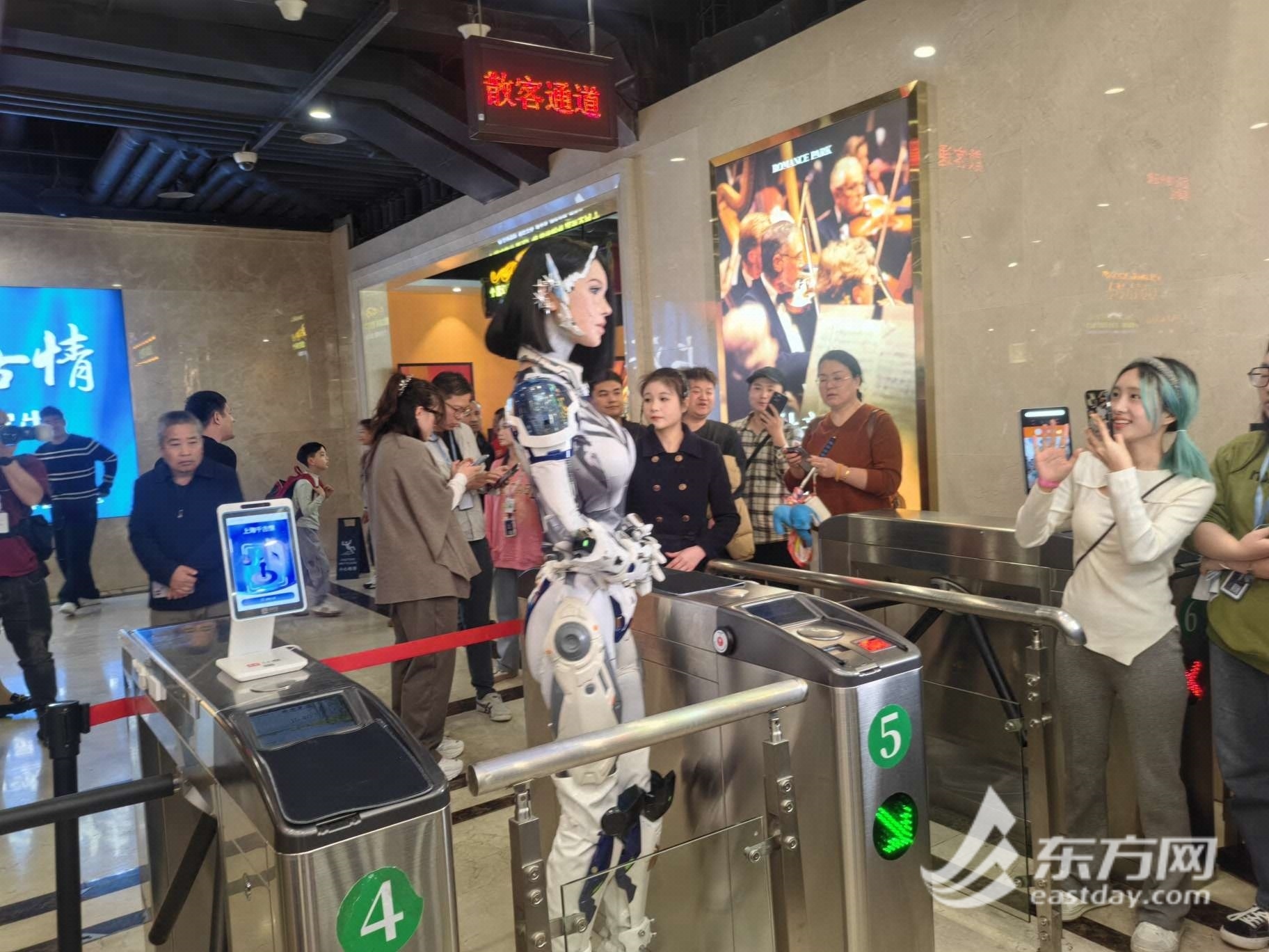 “今天在景区看到AI机器人,简直太帅了!我来这里是想穿越老上海,没想到进门时候是机器人检票的,有一种过去与未来的互动。后来工作人员说这个机器人其实是真人扮演的,太酷了”,市民张小姐拖家带口来过周末,儿子在去年跟着学校春游来过一次,念念不忘,今年就全家一起来玩了,没想到赶上了春日主题活动的试运营。