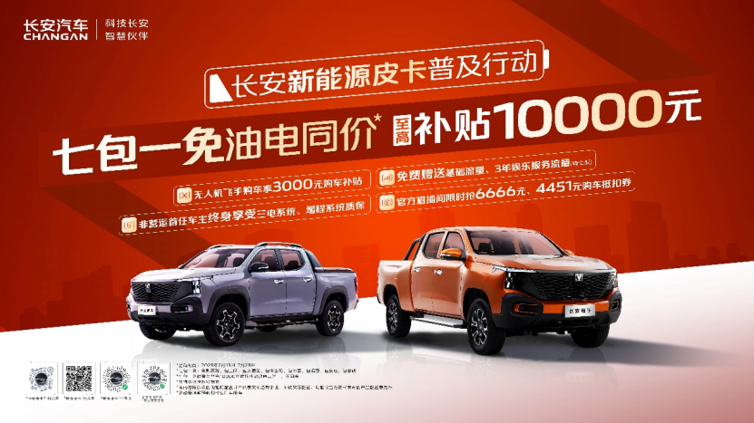 作为全球首款超级大增程皮卡,长安猎手自上市以来连续数月稳居新能源皮卡销量第一。为回馈广大飞手的厚爱,长安猎手不仅推出3000元无人机飞手专属购车补贴,以及购置税减免、包牌包险等“七包一免”福利,直播间还有限时抢购6666元抵扣券,落地价比同级燃油皮卡更低。飞手朋友们千万不要错过这款田间战场的“超级助手”!