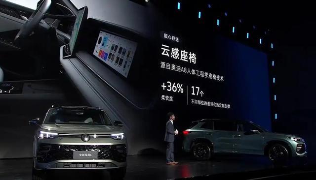 在空间和舒适性方面,如今的探岳加了“L”后,轴距加长至 2791 毫米,车身尺寸肉眼可见变大了。此外,拥有Audi A8 同款人体工学座椅设计的云感座椅,舒适性堪称越级。