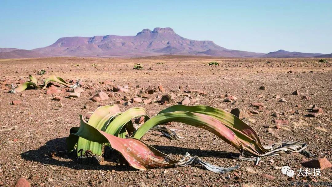 纳米布沙漠是公认的世界上最古老的的沙漠,它的名字在纳马语中的意思是“一无所有的地方”,似乎预示着这里寸草不生。但若说这里真的寸草不生是不大准确的,有一种植物能够在这大沙漠中顽强生存,它是千岁兰,一种裸子植物。千岁兰只有两片叶子,终其一生,也只有两片叶子彼此为伴,它们可以长到数米长。