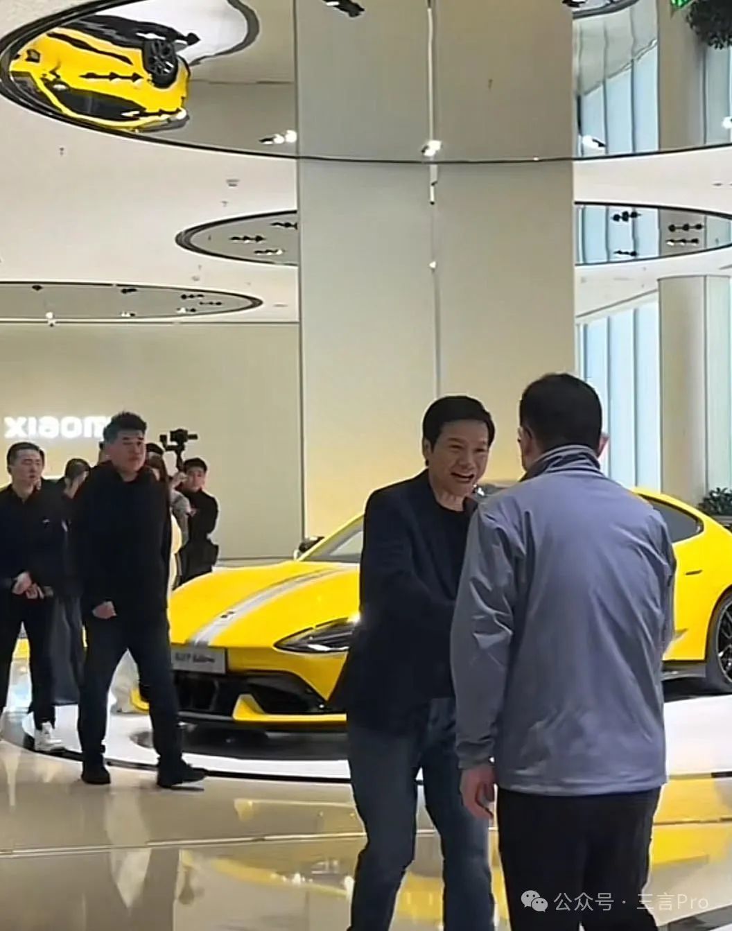 雷军到场后,微微弯腰与车主握手,态度十分谦逊。