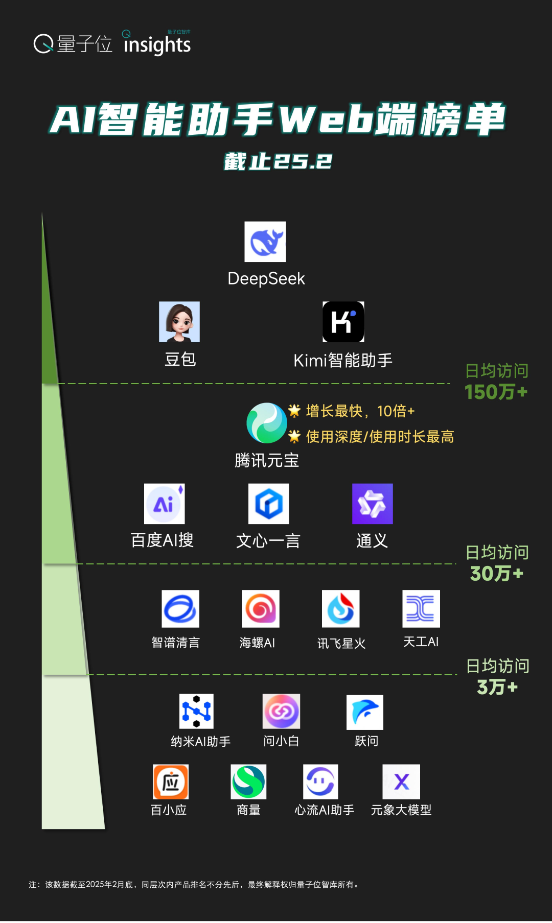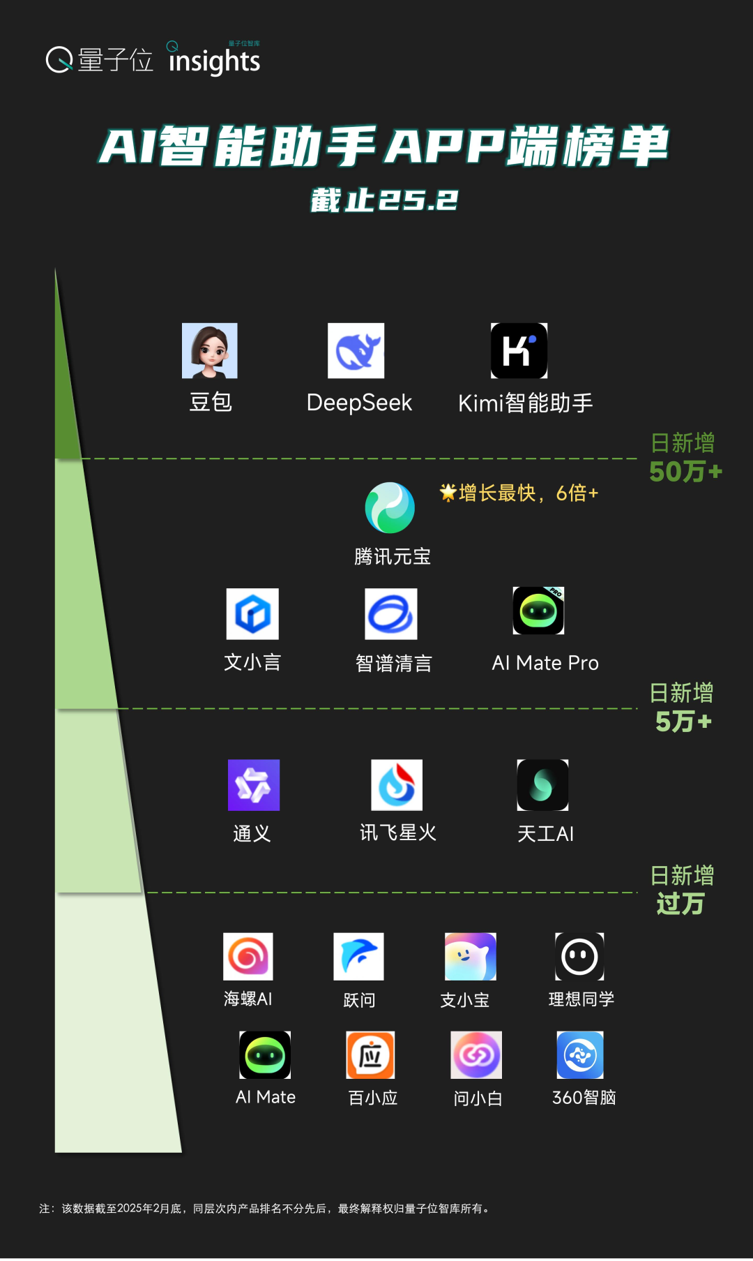 根据量子位智库的观察,元宝可以说是借着DeepSeek的力量,一举改写了AI助手的格局。