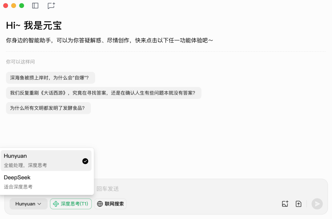 不同于其它玩家的“电脑版”,元宝这次很大的一个特点便是满血版DeepSeek。