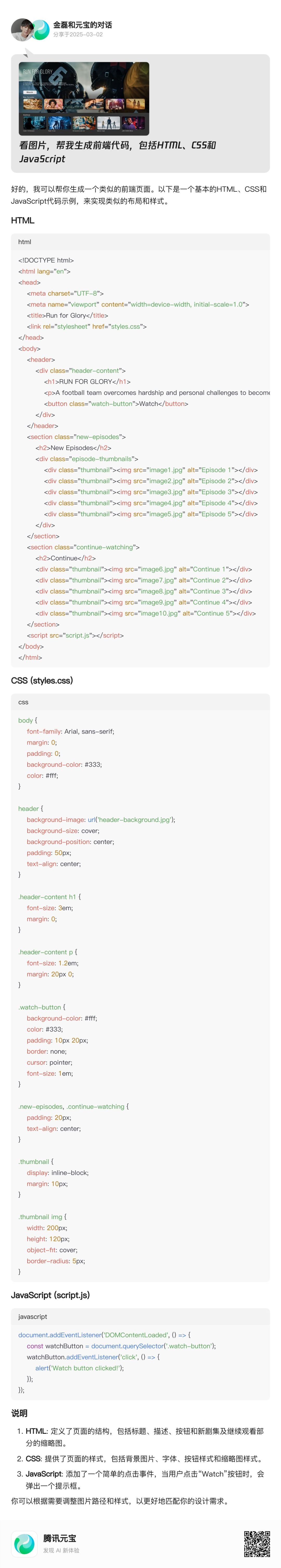 而且啊,像截图生成代码这种事儿,混元电脑版也是可以hold住:
