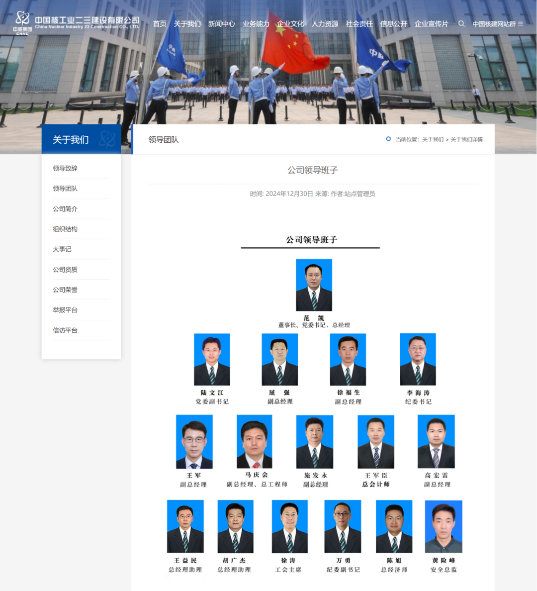 中国核建人力资源部(组织部)总经理王林森主持会议并宣布任免决定:推荐屈强为中核二三副总经理(主持经理班子工作);建议免去范凯兼任的中核二三总经理职务。
