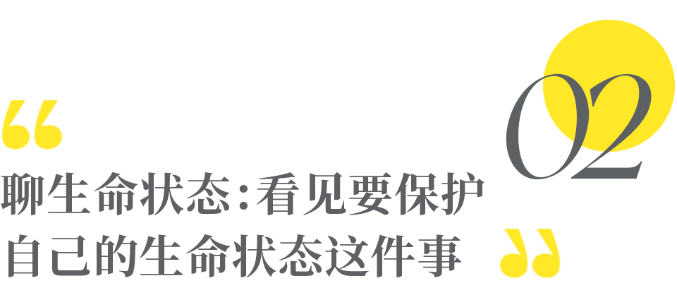 崔璀:因为我看见了要保护自己的生命状态这件事儿,以前是不自知的,眼睛看向远方,看向外面,看向他人。有的时候你可能在消耗自己,你并不知道。这几年做了一件事——看见我的生命状态。