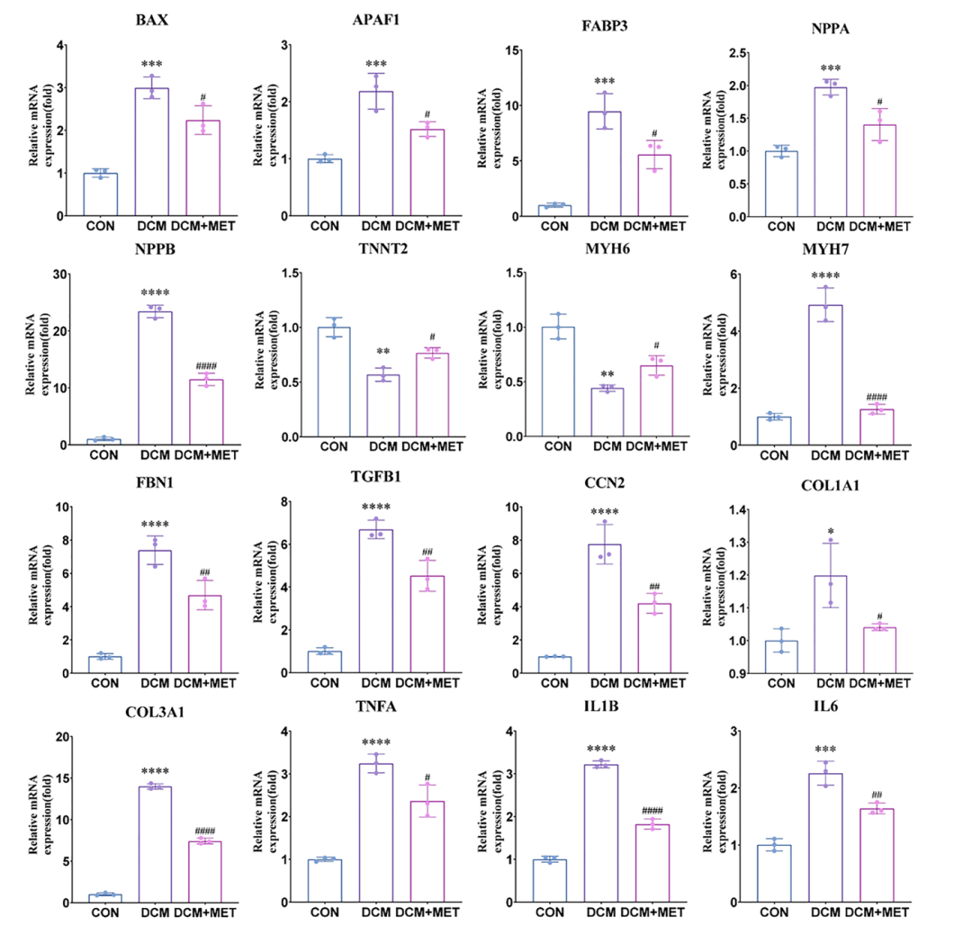 值得一提的是,研究人员使用广泛应用的抗糖尿病药物二甲双胍对构建的DCM模型进行干预。结果令人振奋,二甲双胍能够显著减轻高糖高脂带来的不良影响,降低凋亡、损伤、炎症和纤维化相关基因的表达,部分恢复细胞活力,这一结果也验证了该模型在药物测试和评估方面的有效性。