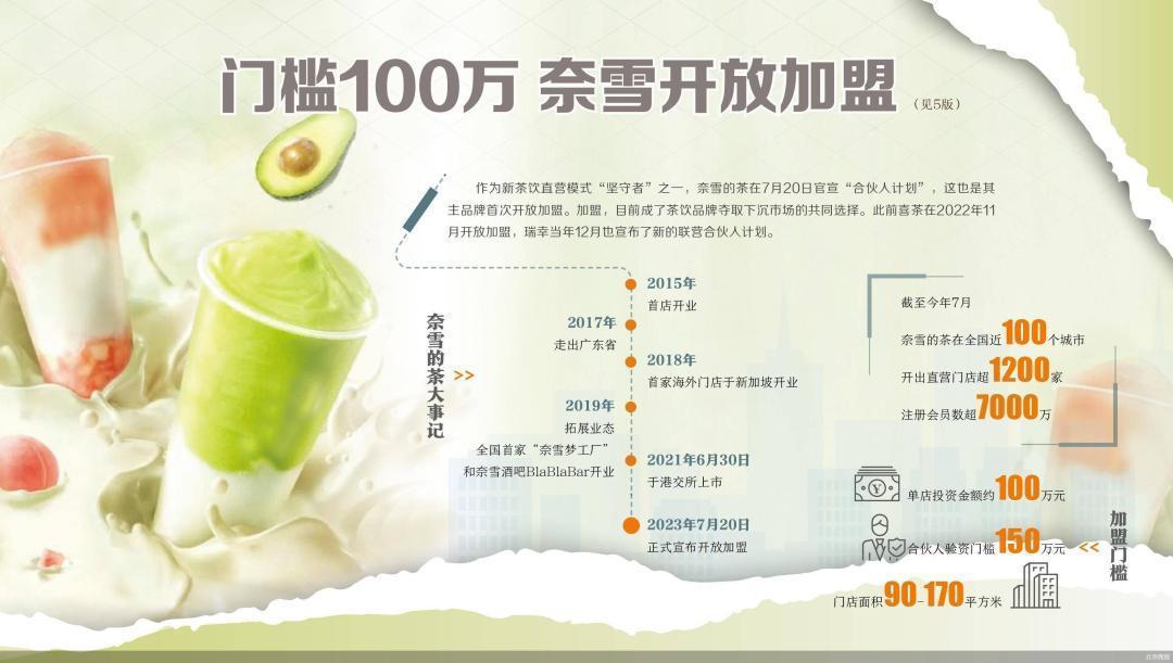 这还是奈雪的茶在开放加盟店的情况下的门店数量,2023年7月,奈雪的茶宣布开放加盟,但奈雪的茶对加盟商提出了苛刻的要求。要求加盟门店的面积在90-170平方米之间,预算至少需98万元,每家门店至少需要5名员工,并规定营业额满6万实收抽1%。这直接吓退了不少有意加盟者。