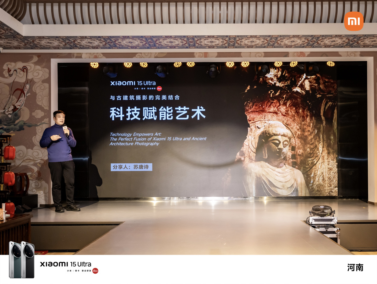 此外,中国古建筑摄影名家苏唐诗老师结合Xiaomi 15 Ultra,从古建筑摄影的角度也为我们分享了科技是如何赋能艺术的。他特别提到了石窟独特的暗光环境在影像记录时也对设备与技术的有极大的考验——佛窟微光易失细节,复杂岩壁难控噪点,而Xiaomi 15 Ultra可以在逆光或复杂光线场景中,能同时保留高光与暗部细节,避免过曝或死黑;在暗光下仍能保持高进光量,配合AI算法优化,可清晰捕捉室内或夜间建筑的细节。借助先进的光学系统与智能算法,即便在幽暗中,佛像衣褶的起伏、莲花纹饰的细腻、甚至匠人刀锋的痕迹皆清晰可辨。