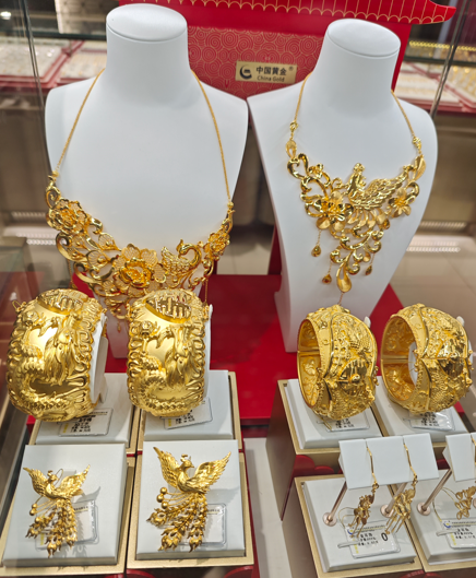 ▲“一口价”黄金款式饰品较为时尚,但价格比以克计价的黄金饰品要贵