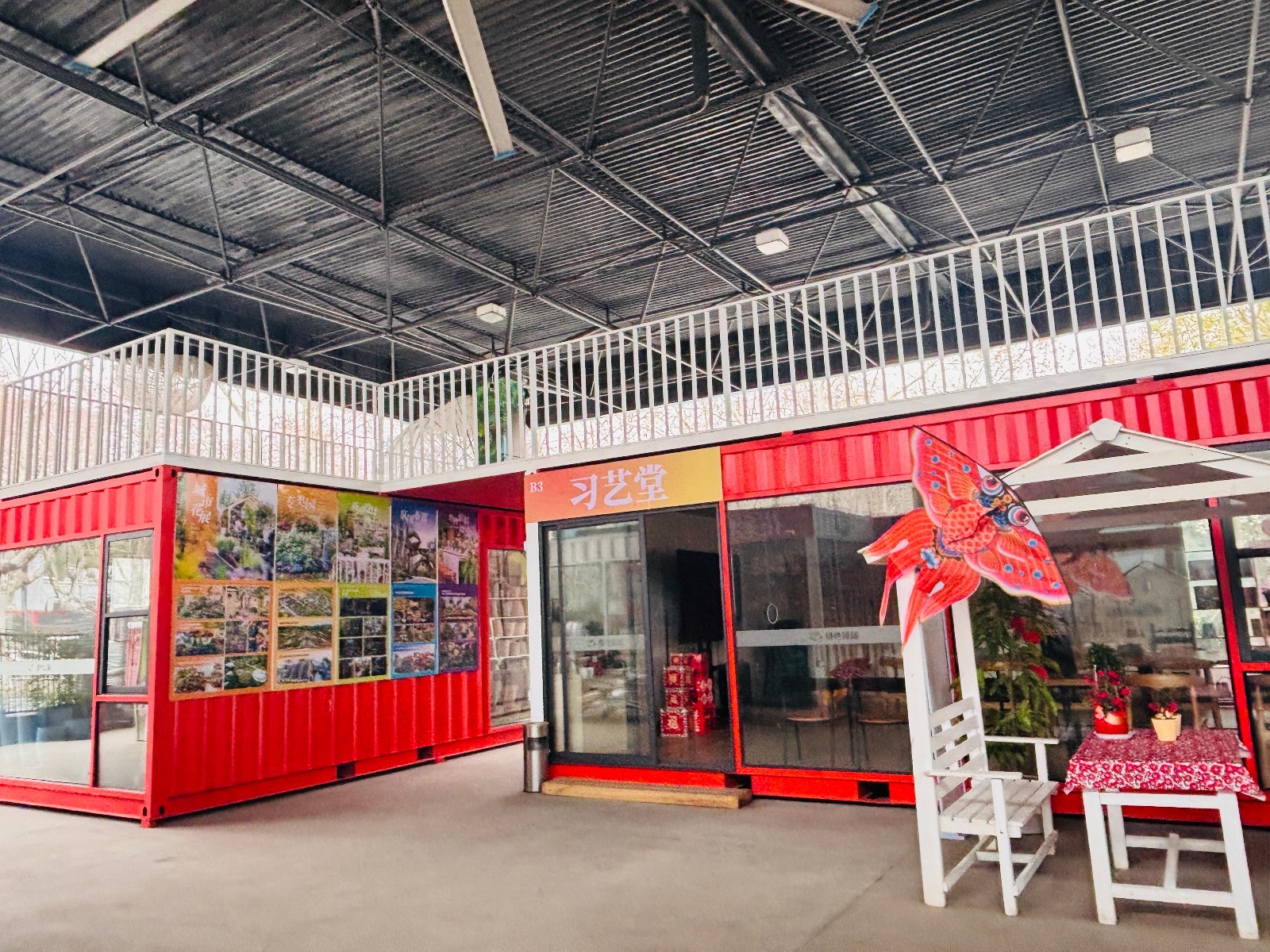 2月28日上午,九派新闻记者看到,这座绿色驿站由温室大棚以及多个集装箱改装,分为“习艺堂”“植趣堂”等区,占地面积约2500㎡。它位于园林科普公园大门东侧,原本是一处废弃加油站,2023年9月底改建后对外开放。此次酢浆草花展于2月14日至3月31日开放。