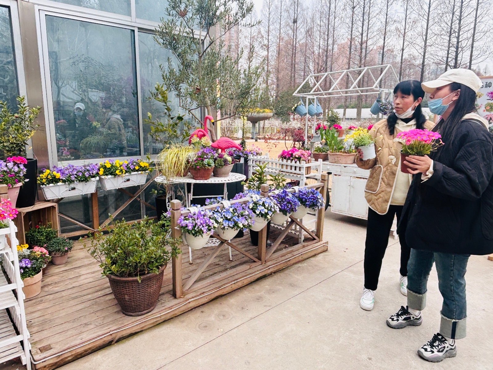 市民前来采购花卉。图/九派新闻记者 蔡晓萱