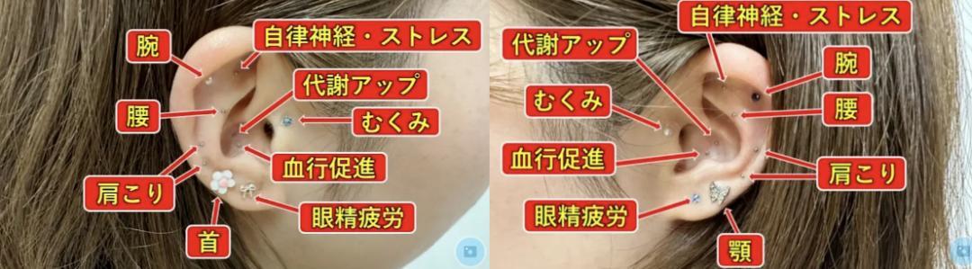 前日本女子排球国家队选手栗原惠的耳朵更是琳琅满目,贴的穴位多,款式也各有不同,她在文案里写:“(耳穴首饰)就像算命一样,准确地指出了我哪里不舒服。”