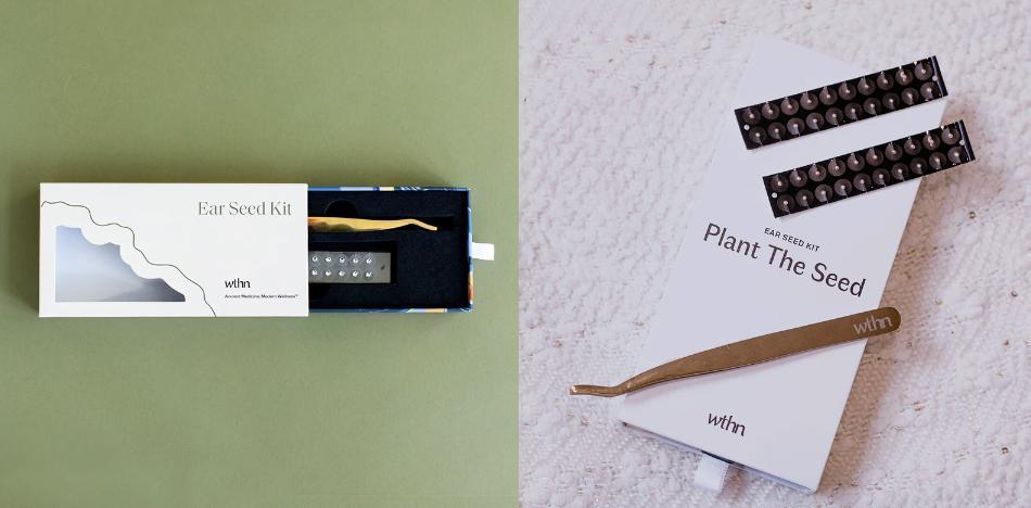 她神神叨叨但卖得很好的健康和生活方式品牌Goop,就是推出过“这闻起来像我的阴道”“这闻起来像我的高潮”两款香薰蜡烛的那个,宣传、经销过纽约一家针灸工作室的耳穴保健套装,包含40颗压豆、一个镊子、医用胶、穴位图,有24k镀金版本和施华洛世奇水晶版本,一套45美元(约合人民币327.3元)。