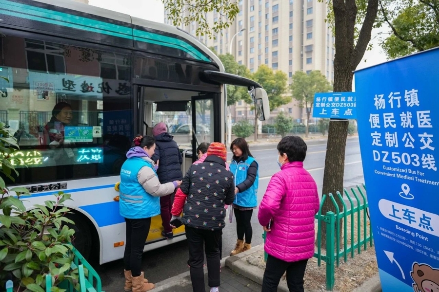 目前,杨行镇域内已开通DZ505、DZ503两条便民就医定制公交线路,覆盖淞宝地区全部三家三甲医院。公交巴士五公司相关运营负责人表示,未来,公司将在常规班次运营的基础上,探索推出手机扫码预约定制公交服务,全力做好满足居民个性化需求的“高级定制”。