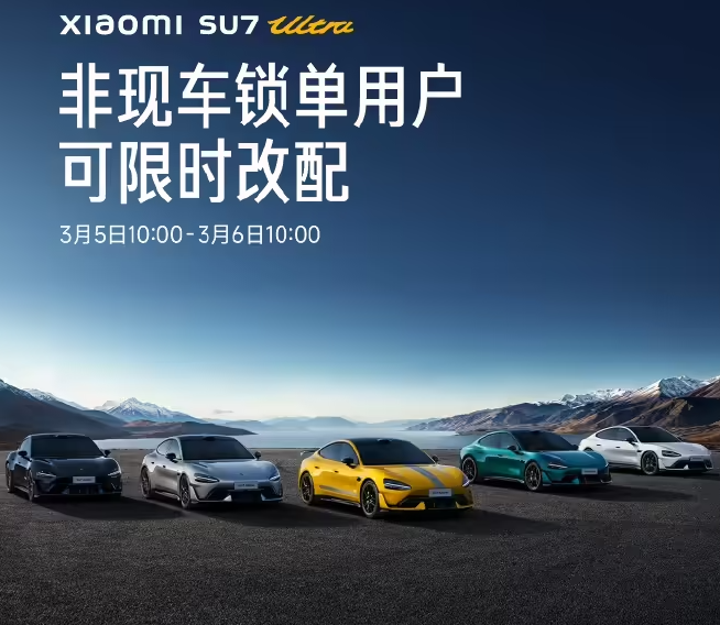 小米汽车宣布,3 月 5 日上午 10 点起,已下定 Ultra 非现车并锁单的用户,可在小米汽车 App 更改选配,改配活动仅一天。