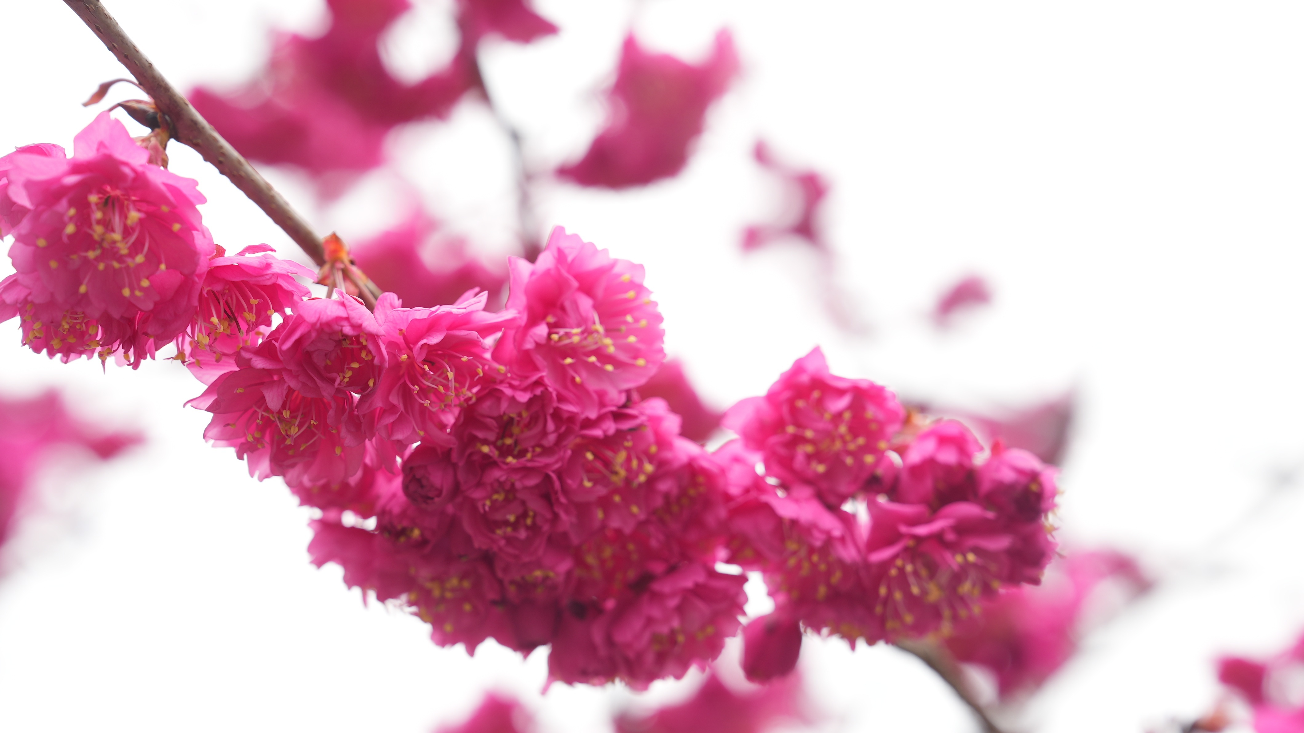 这些采用杂交育种、实生苗变异等技术手段培育的樱花新品种,较之市面上常见的樱花,颜色更艳丽、花期更早、花量更大。在今年2月中下旬,这些樱花新品种已经陆续盛开。