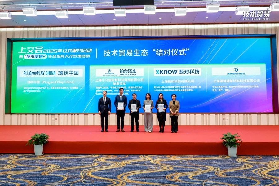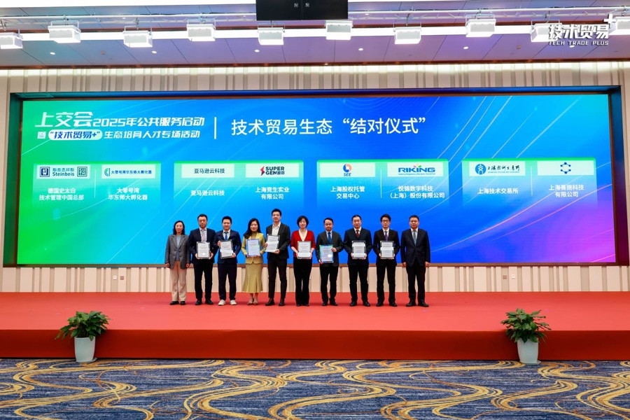 为进一步培育完整的技术贸易生态,上交会组委会以年度为单位,2025年全新推出以“上交会”为核心的技术贸易公共服务五大品牌活动并举行了启动仪式。据悉,技术贸易公共服务五大品牌包括“技术贸易+”、“上交会发布”、“上交会朋友圈”、“技术贸易促进服务联盟”和“技术贸易与创新发展公共服务”,全年计划推出十余场专业服务活动,将更好为企业提供具有针对性、多层次和多类别的服务。