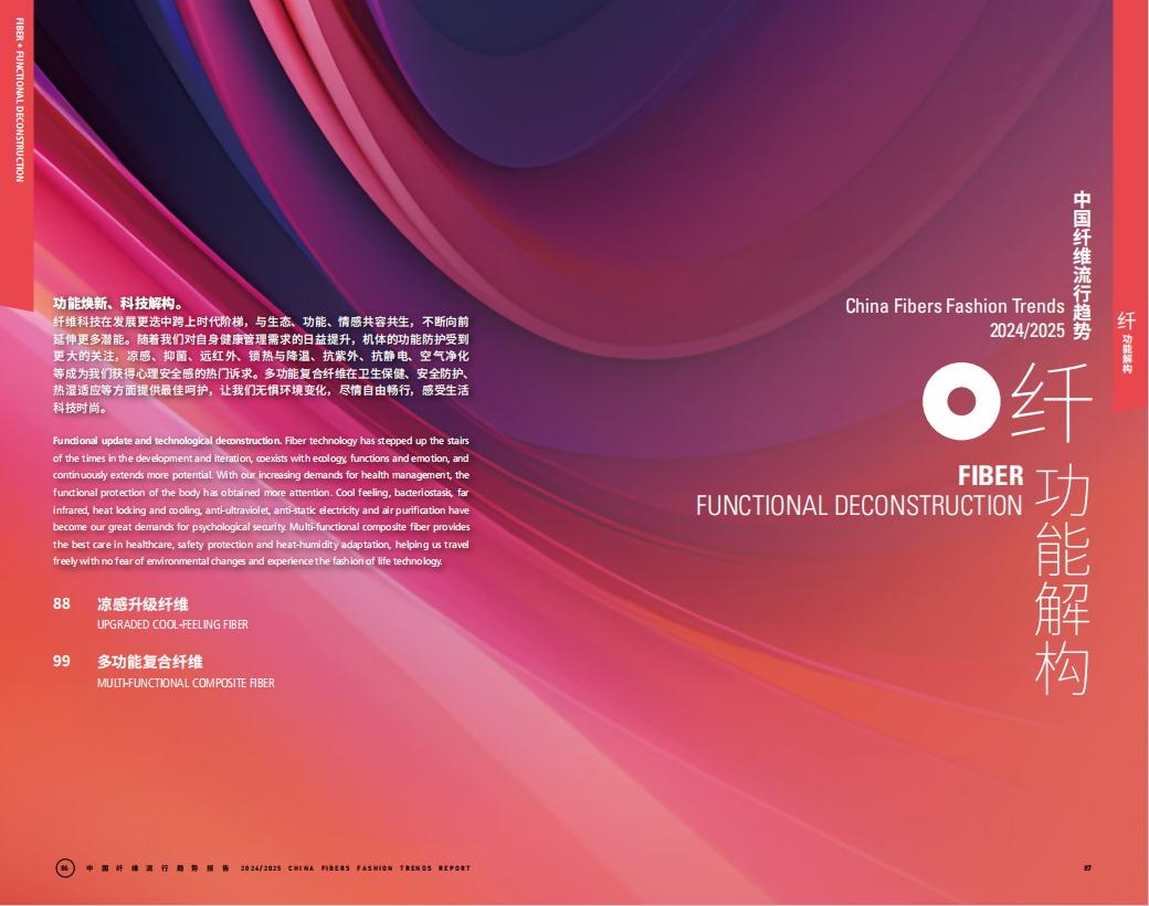 《桐昆•中国纤维流行趋势报告2024/2025》汇集本年度科技、绿色、功能等方面最具前瞻性的纤维品种,推广新材料、新技术、新工艺、新应用,为纤维品牌带来更广阔的市场空间,是中国纤维领域的“百科全书”。