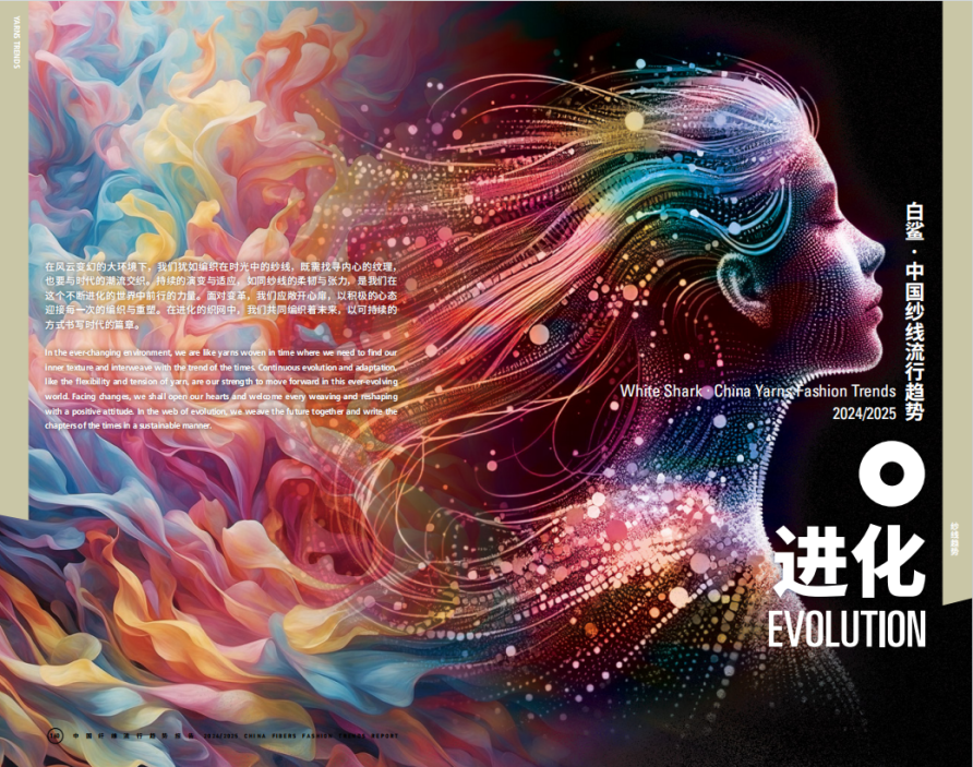 中国纱线流行趋势2024/2025:以“进化“为主题,发布低碳、多元、颜值、优品4个方向40种纱线品种,引领纱线时尚新风向。