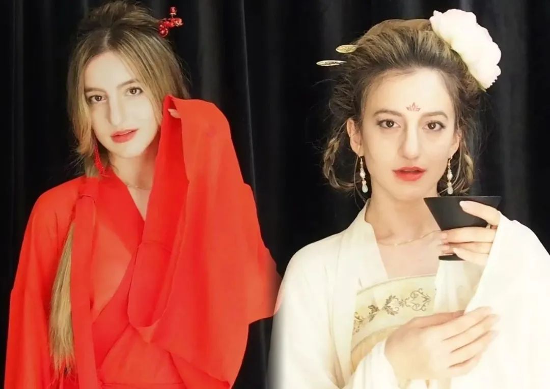 而cosplay则是于中美近来在自媒体创作领域开辟的一条新的内容创作路径。当她身着汉服,cosplay《倚天屠龙记》中的周芷若、小昭,《花间令》里的上官芷,以及杨贵妃等人物时,那婀娜多姿的形象被网友们赞誉:“西洋面孔,唐人霓裳”。这种独具特色的跨文化呈现方式,展示了她对中国文化的深入理解与诚挚热爱,也吸引了大量的粉丝关注。