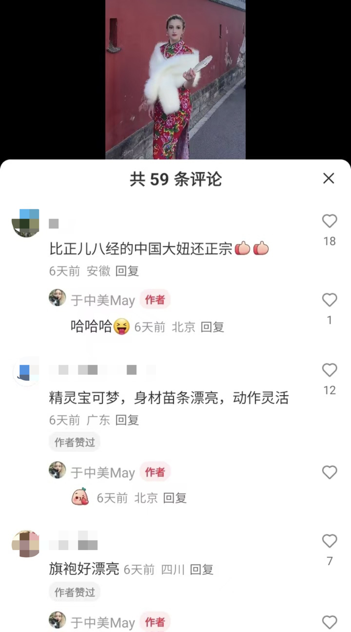 如今,于中美是一名自媒体博主,通过vlog记录在中国的生活点滴,向世界传递她对东方文化的独特理解与热爱。