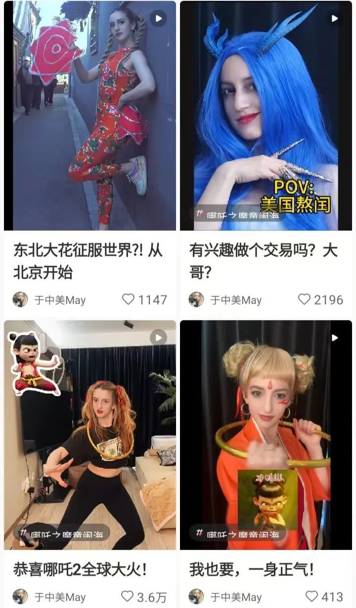如此独特的“洋姑姑”和“进口版敖闰”形象,让无数网友大开眼界,纷纷赞叹她的创意与表现力。于中美向北青报记者透露,她最近还计划推出一期方言版的cosplay哪吒。说着,她便兴致勃勃地用四川话学起“天雷滚滚我好怕怕,劈得我浑身掉渣渣”,特意将“掉”字转出俏皮的三声调,眼中闪烁着孩童般的兴奋。她还好奇地询问这句话用北青报记者的家乡话怎么说,随后像模像样地认真学了好几遍,边学边笑道:“中文方言真的很奇妙!”
