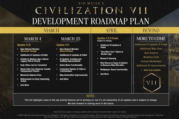Firaxis@2K Games将改进游戏UI列为优先事项,安排了1.1、1.1.1、1.2.0三个波次更新,今日释出1.1.0版补丁: