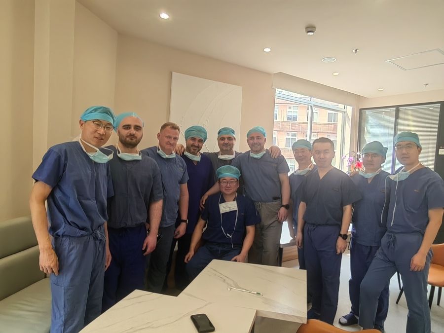 在九院手术室,俄罗斯专家现场观摩了李慧武主任医师使用“鸿鹄”手术机器人辅助完成两例全膝关节置换手术(TKA手术)。术前,李慧武主任医师根据患者的影像学资料,为患者制定了个性化手术方案。术中,机器人根据术前规划实时调整角度,将截骨精度控制在0.1毫米内,仅用20分钟便完成个性化截骨。