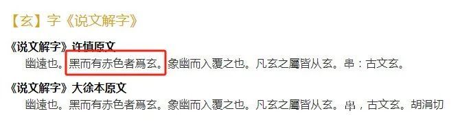 《说文解字》中说:“黑而有赤色者为玄”,“玄色”应该是带有几抹泛红的色调。