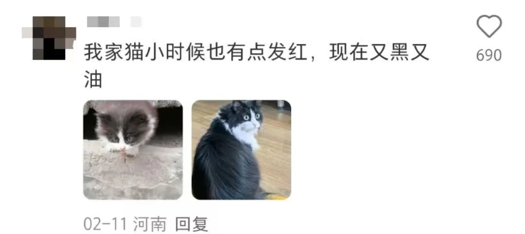 有人怀疑是因为小猫营养不良才导致变成红毛的…