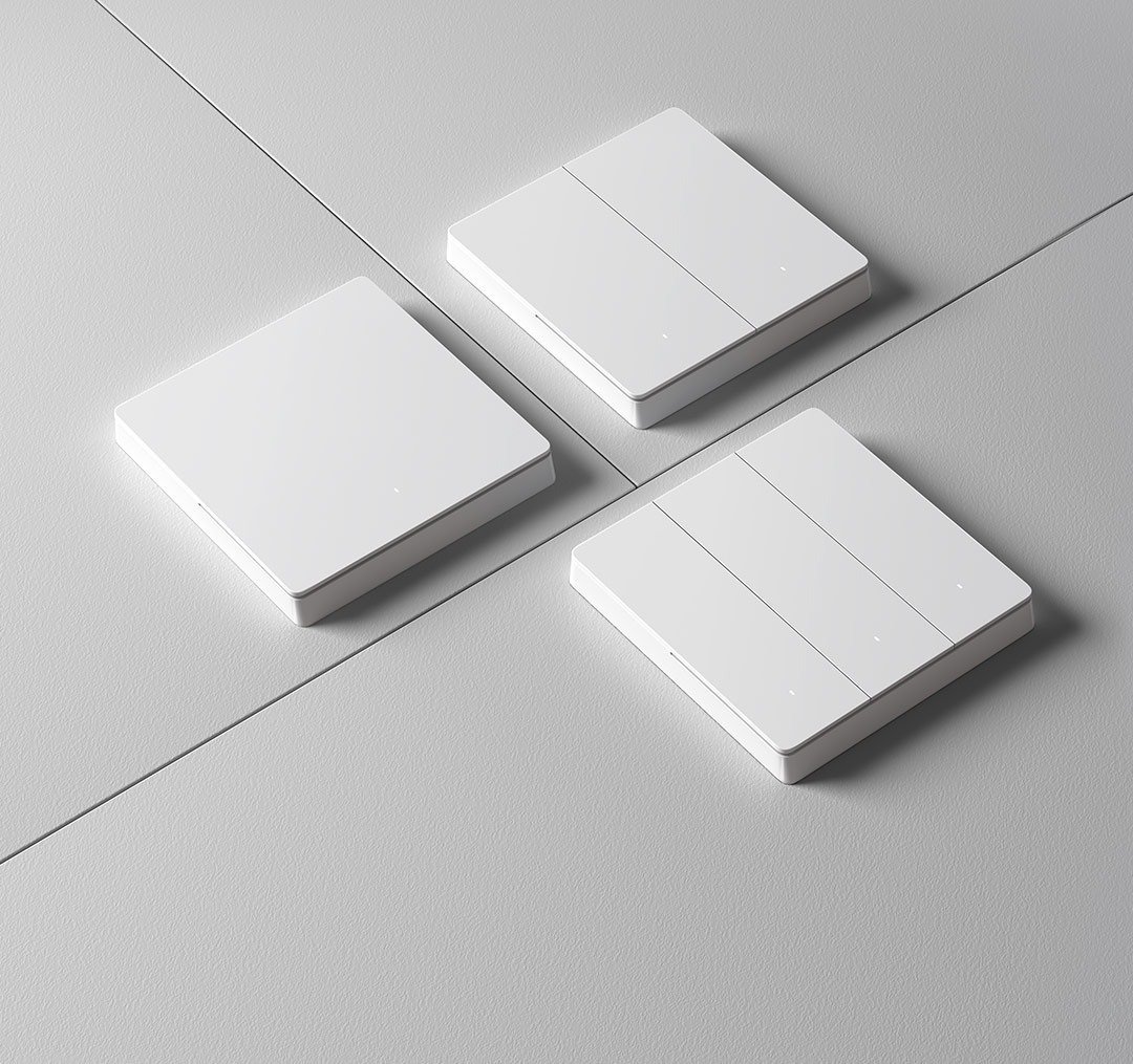 这款开关的设计比较常规,整体是白色的面板,提供了单开、双开和三开三种形态选择,每个开关下方都配备了一个发光的小点以提示开关状态。据小米称,这款产品采用了短键程搭配硅胶缓冲垫的设计,噪音干扰少,且手感清晰。